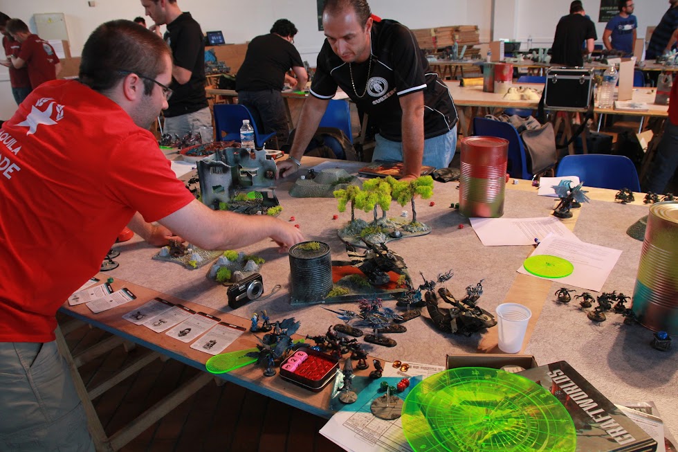 La partie en elle-même est un parfait équilibre entre mes conneries dues à la fatigue d'une part, et ma chatte d'autre part (exemple tout con, les 18 hurleurs qui font des attaques au passage sur mon conseil et mes araignées, 8 saves dans le conseil, 12 saves dans les araignées, le tout à 3+, une perte dans chaque escouade). Mais Subzero et moi allons passer la partie à se vanner mutuellement, et la partie sera bien cool. Finalement je me reprends en fin de partie, lui fait un vol digne d'un Eldar et rattraperait mon retard au Maelstrom et au KP pour arracher une mini victoire 11-9. L'Aquila Crusade gagnera cette ronde, notamment grâce aux deux "gros bills qui s'assument pas".